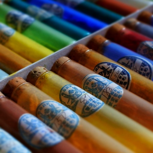 Crushed natural minerals and color-coded according to particle size. Since modern times, it has become artificially made, easier to handle, and more types.
